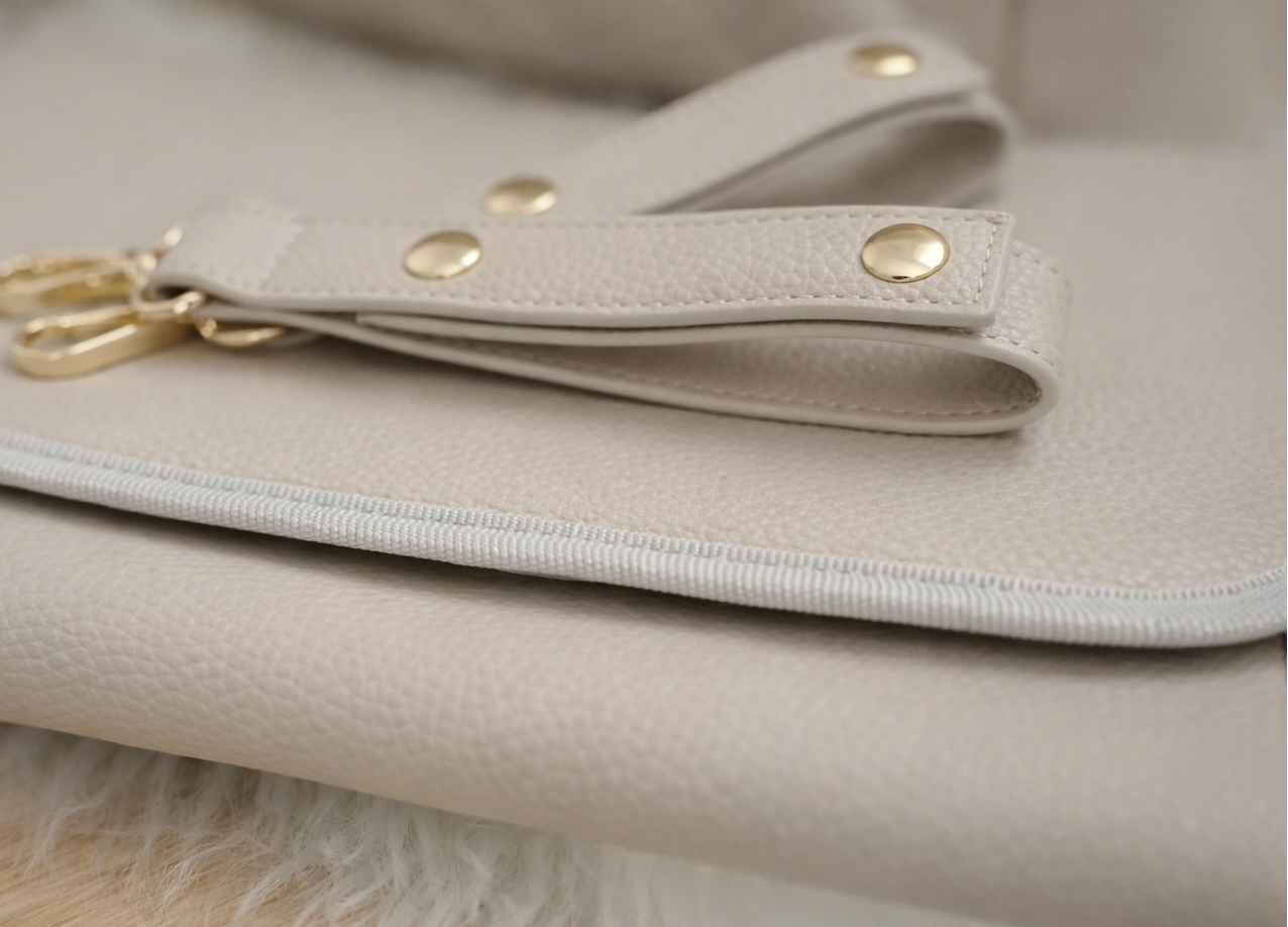 The Mabel Change Mat is wipeable and foldable, making it easy to keep clean and store in your bag. It also has a hidden magnetic fastening.